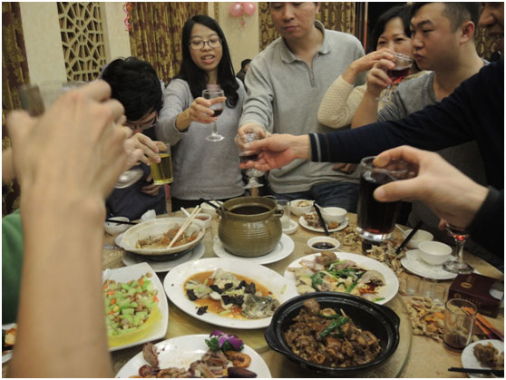 美味佳肴又怎么能少了美酒相伴,來,我們大家一起來走一圈,舉杯,干了~~~~